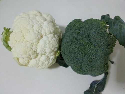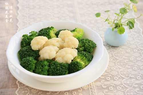 1菜花和西兰花各半个就行,冲洗干净后切小块备用。