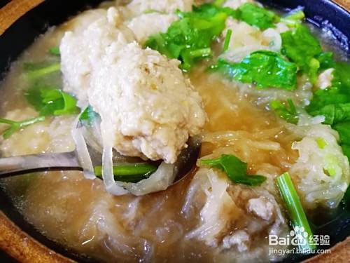 萝卜煮软,加少量油和酱油,用汤勺将肉泥一个一个铺在上层闷五分钟。