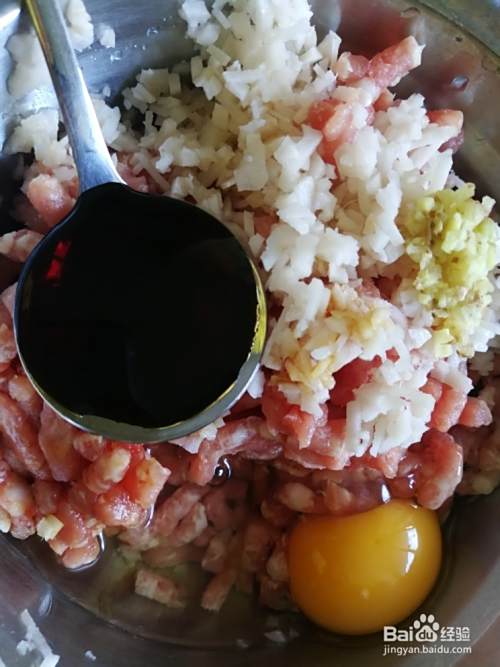 莲藕碎,姜末,两勺酱油,两勺香油,一个鸡蛋,朝一个方向拌匀至粘稠状。