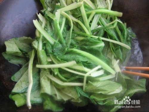 锅中放入适量的凉水,水开后放入小白菜焯至变色,马上捞出。