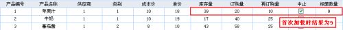 设置自动计算后,修改将库存量、订购量以及再订购量的值,自动计算出相差数量的值,如下图: