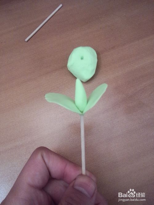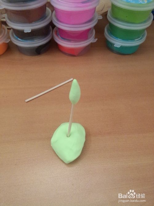 拿出最小的一个,揉成水滴状,然后插在棍子上,作为花心(PS:下面那大团是为了固定棍子,忽略忽略......)