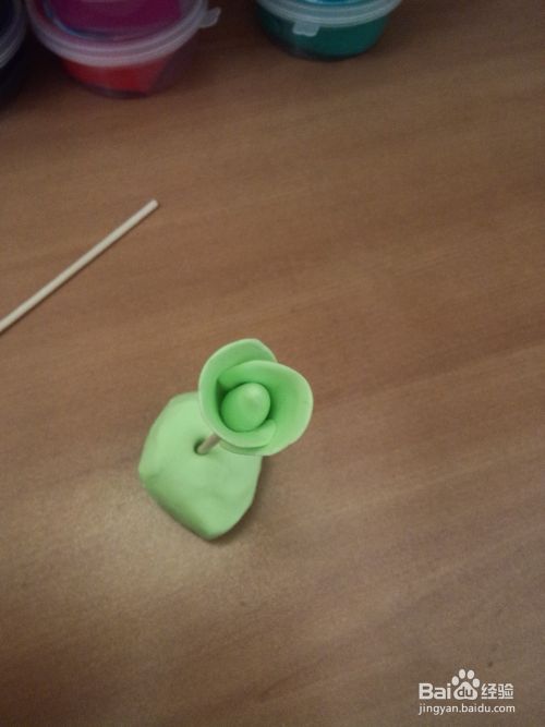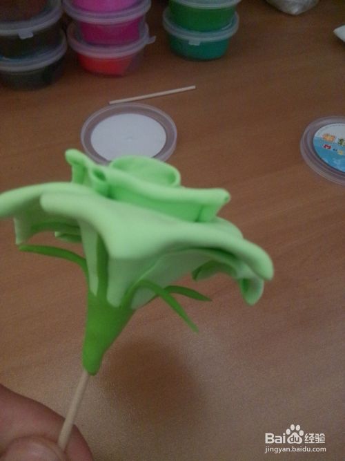 最后揉几根细丝,粘在底部,组成玫瑰的叶子,大功告成!!很漂亮是不是?