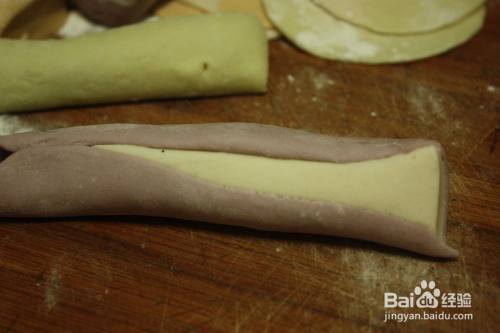 带颜色的面团包着白色的面团