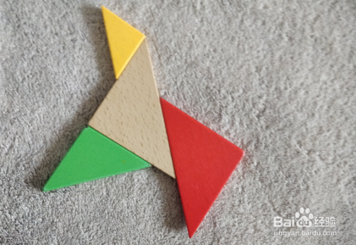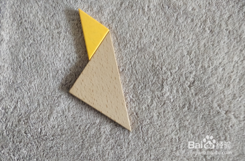 放上本色三角形,上面放上黄色三角形挨着,如图。