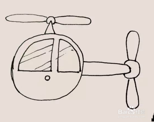 在上面画一个小三角和一个圆,左右各画一个长条的形状作螺旋桨。