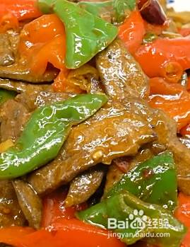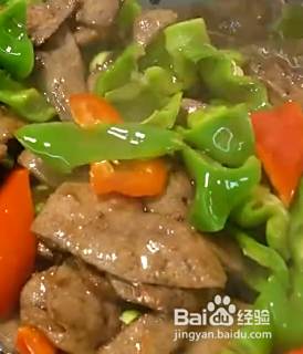 起锅烧油,放猪肝,滑熟,放入青红椒,捞出即可