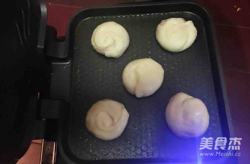 12将电饼铛预热(上下盘同时加热),倒一些菜籽油在电饼铛下盘,用硅胶刷涂抹开来,将生面团摆在预热好的电饼铛里,每个面团之间留出足够空隙