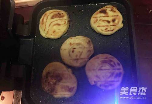 13盖上电饼铛,选择“馅饼”,提示音会响起,烙到一半的时候可以打开电饼铛,视情况将酥饼翻面