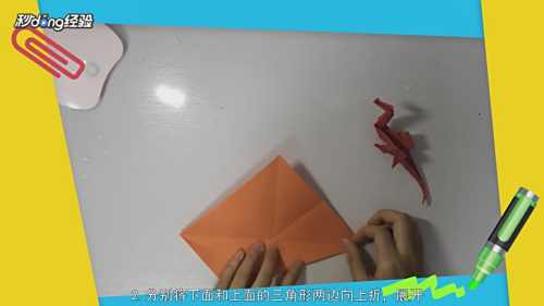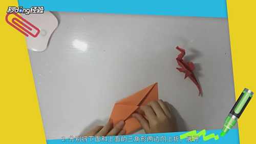 3将下面及上面的三角形两边向上折。