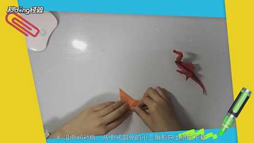 5沿着中间折痕对折。