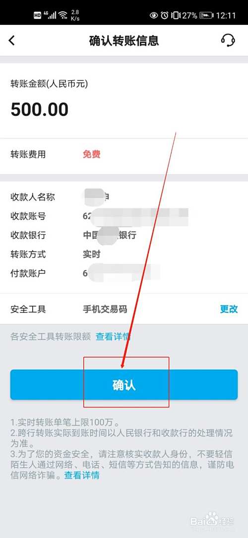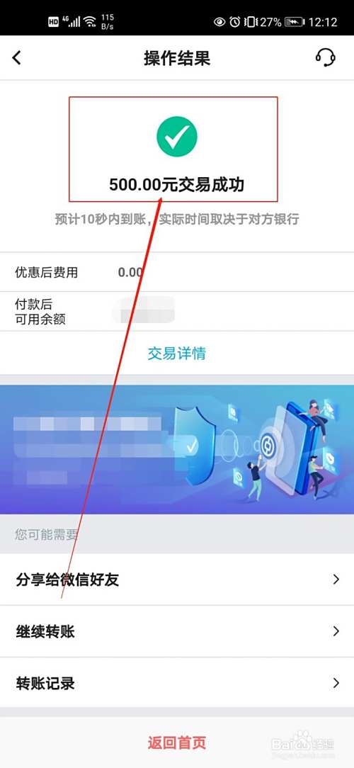 最后,系统就会显示转账成功了