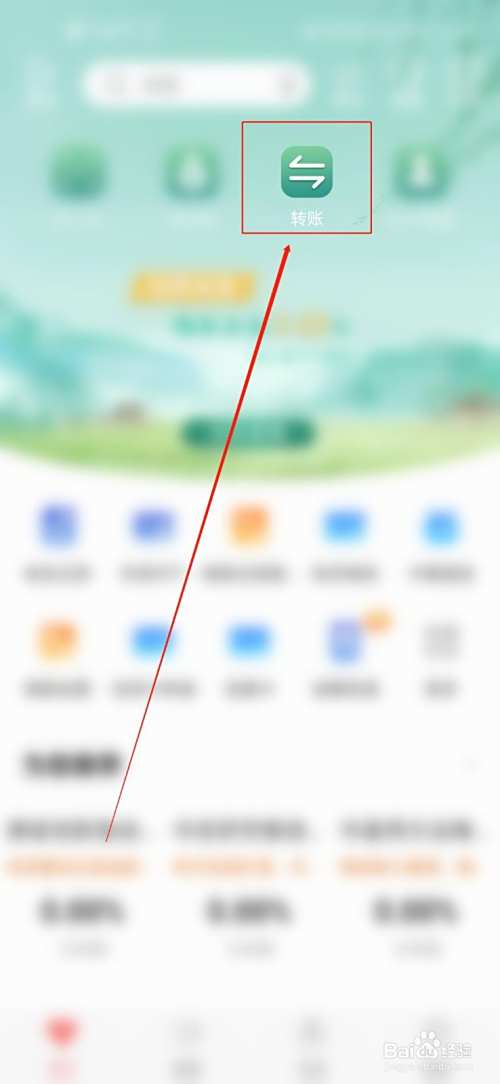 第二,然后点击主页里面的“转账”