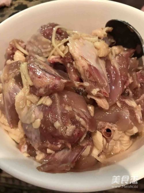 1将鸡洗净,斩成小块,用辅料(除腊肠和新鲜蒜蓉之外)腌大概30分钟!