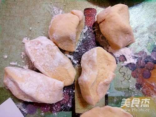 将面粉和玉米面混合,放入酵母和适量水和成光滑的面团,放在温暖处进行发酵,这是发好的面团