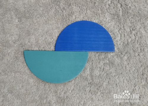 将蓝色大半圆弧线在上,如图放在桌面上。