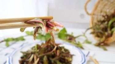 把曲曲菜的菜根掐掉,这样就更加鲜嫩了。