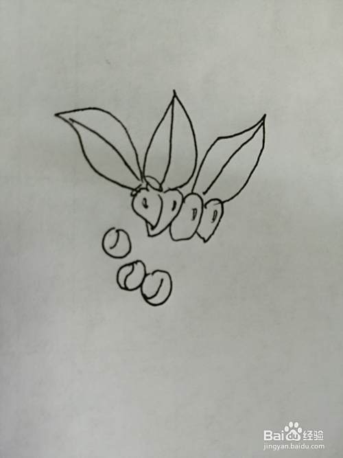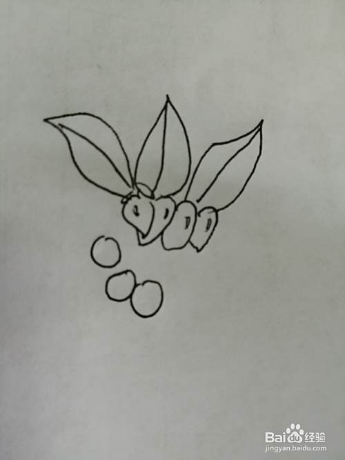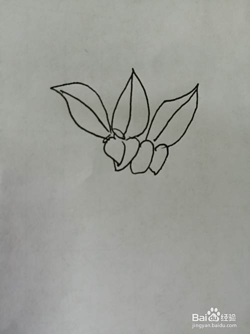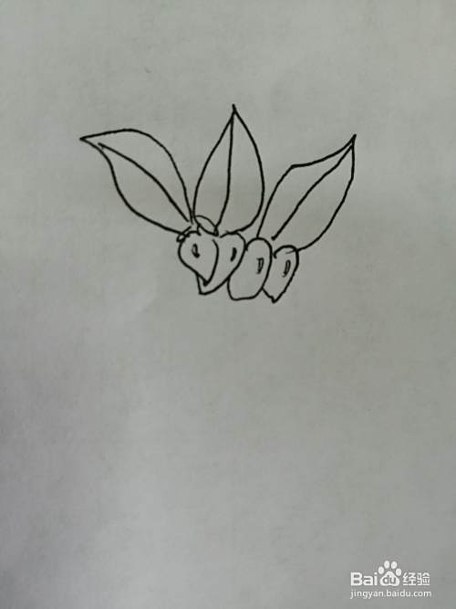 第二步,接着在两边部分画出另外两片叶子纹样。