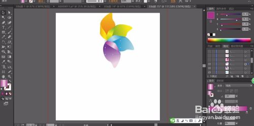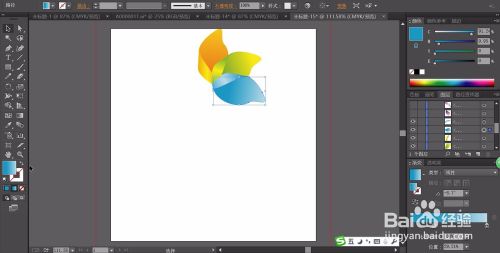 继续设置一个蓝色的渐变,我们再复制一下叶片并旋转60度左右,我们用蓝色的渐变填充这个叶片。