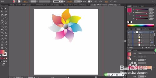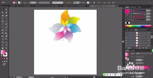 用同样的方法,我们填充出粉红色的叶片与灰色的叶片,让各个叶片之间的角度保持均衡。