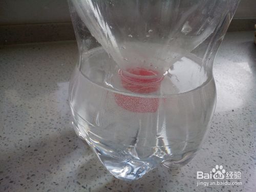 拧好瓶盖将减下来的瓶底装上水,瓶口部分倒着放进瓶底瓶盖要放进水里,上半部分进水就可以了