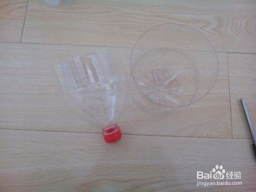将分开的瓶子上半部分在剪去一部分,留下大约十厘米左右就可以,不算瓶口部分