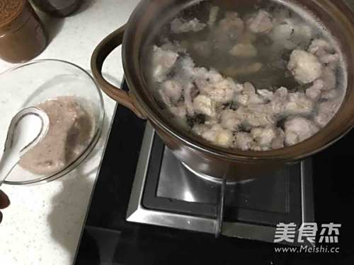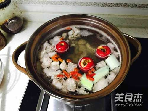 7烧开后将飘起的浮沫撇净。