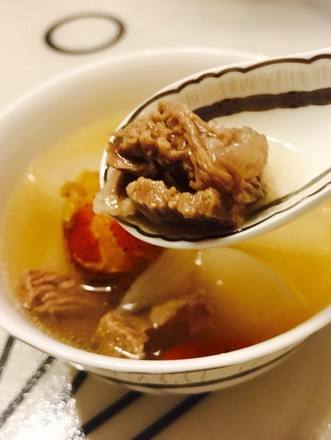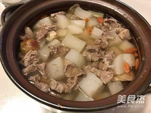 天冷了,你知道东北的冬天说冷就冷的很快~冬日里,煲一锅羊肉萝卜汤给家人喝,想想就觉得很温暖有没有?我这锅汤煲了一个半小时,羊肉属温性,白萝卜的食疗价值也很高,,具有下气、消食、除疾润肺、解毒生津,利尿通便的功效,与羊肉一起煲汤,既可以中和羊肉带来的温火,又能够起到养生滋补的作用,真真的是一道冬季补身佳品。