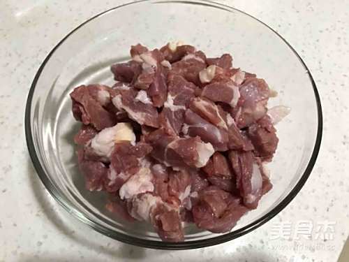 2羊肉切成大小均匀的块状备用。我买的是肥瘦相间偏瘦的羊肉,比较适合煲汤。
