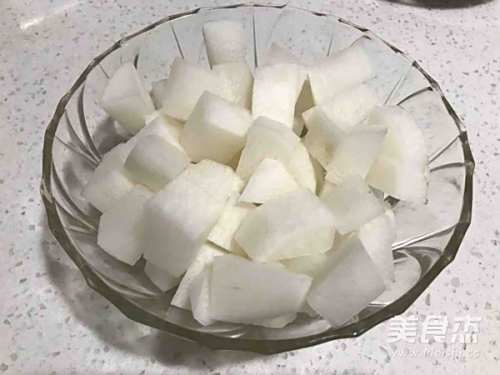 1白萝卜洗净去皮,切成大小均匀的小块,备用。