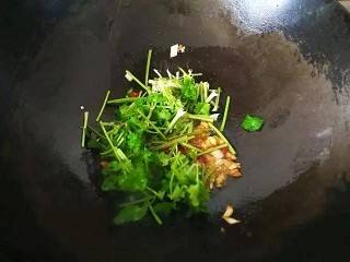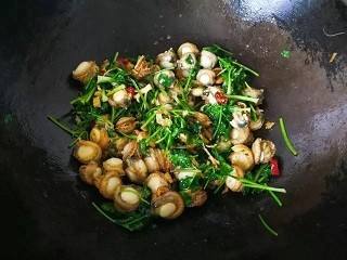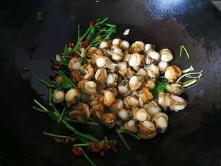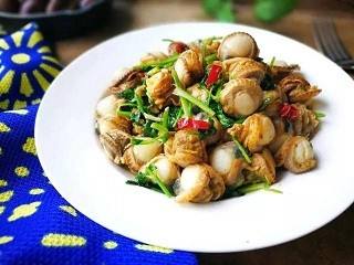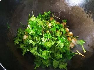 锅内倒入食用油,加热,放入生姜、大葱和红辣椒,炒香,加入香菜根和生抽,炒匀,放入扇贝肉,炒匀,加入香菜叶,炒熟,放入食盐,炒匀。