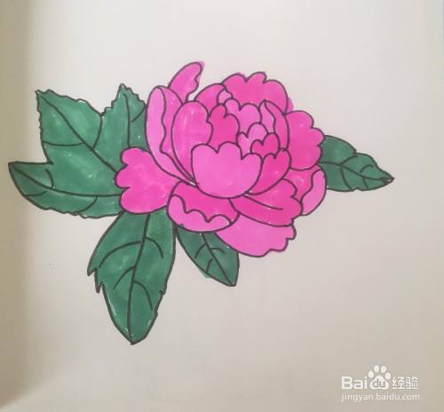 涂上颜色,一朵美丽牡丹花就画好了。