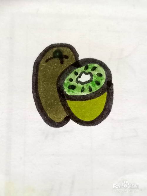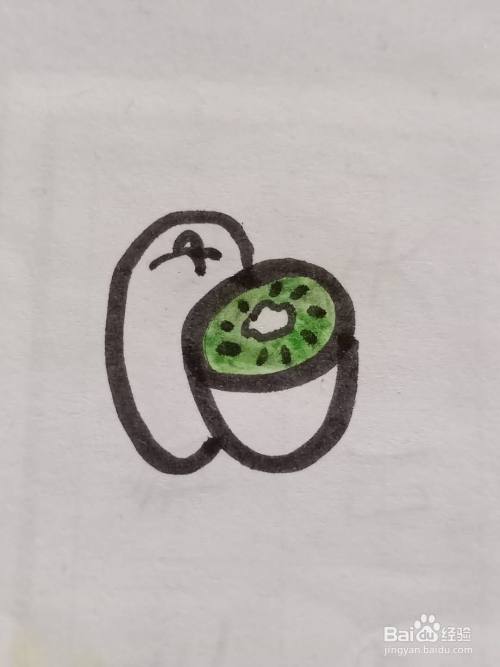给另一个猕猴桃涂上草绿色。
