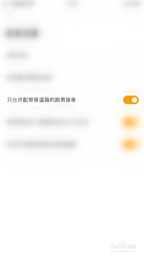 发单设置界面点击“只允许配带保温箱的跑男接单”后面的圆点