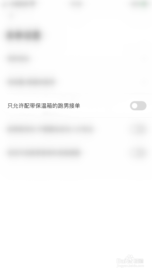5、“只允许配带保温箱的跑男接单”后面的圆点变为灰色即表示UU跑腿关闭只允许配带保温箱的跑男接单成功