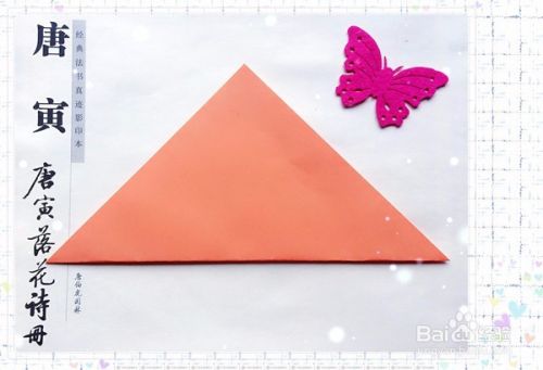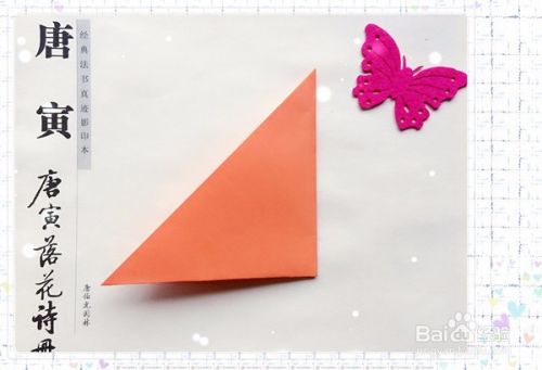 然后再把上面的大三角形沿着中线的短的横中线进行对折。折好后如图所示,是一个小的直角三角形。