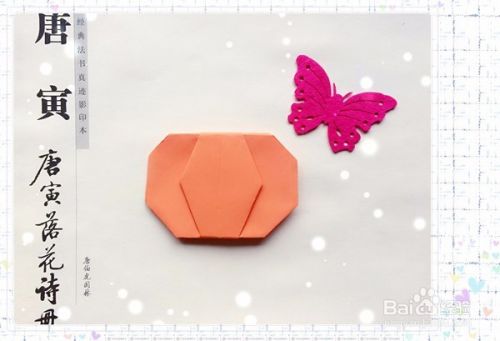 最后把下面和旁边的角也依次的折到后面。同样也是要观察南瓜的整个轮廓,折进去多了少了都会不好看,适当的调整是可以的。