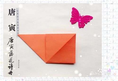 把三角形的其中一个角打开压折成图中的小正方形的样子。不会的可以仔细观察一下图,这个地方的折法还是很简单的。