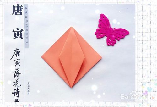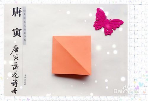 然后把最上面的小正方形的角往后折。对照一下图中的样子,折进去多少可以微调,感官觉得好看就行。