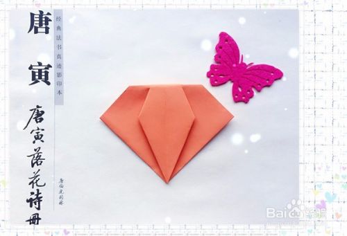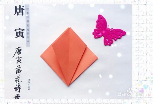 再把对应的角的两边也按照上面同样的方法往内折。折好后就是一个小菱形,大家可以对照一下图中的样子看是否一致。