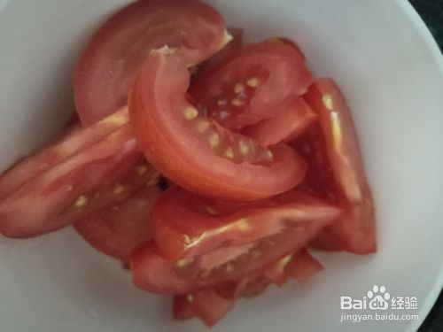 将豆腐用清水浸泡一下,西红柿洗净切块状备着。