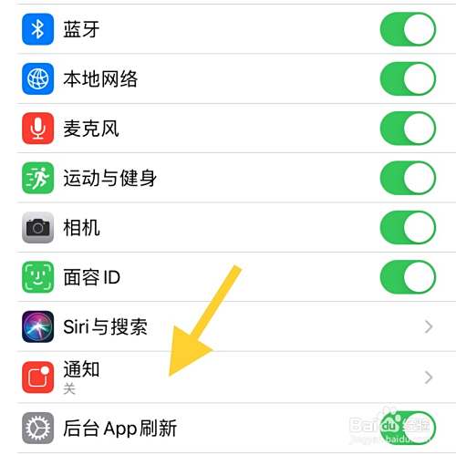 跳转到系统设置,点击【通知】选项,打开【允许通知】后门的按钮即可