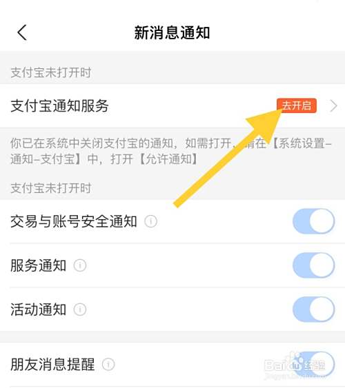 点击【支付宝通知服务】后面的【去开启】图标