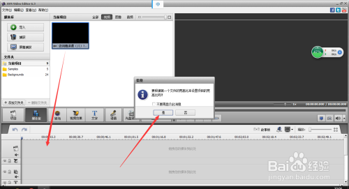 将视频拖到视频轨,同意按照视频宽高比设置项目宽高比