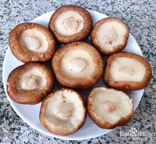 新鲜的香菇去蒂在水中浸泡一会儿再清洗干净。