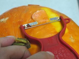 去皮,拿手上用刀削太累,我把它按在案板上,拿刨子自外向里拉动,去皮又快又省力。