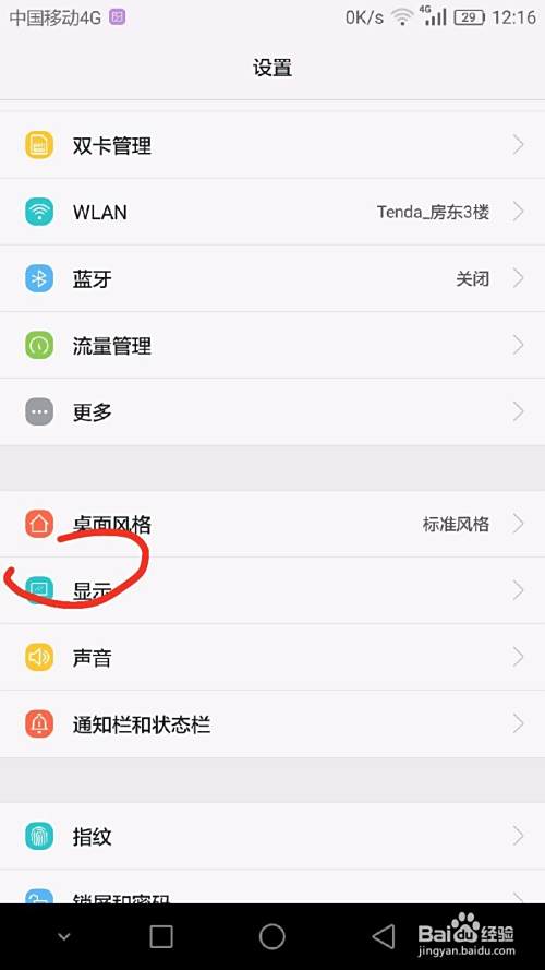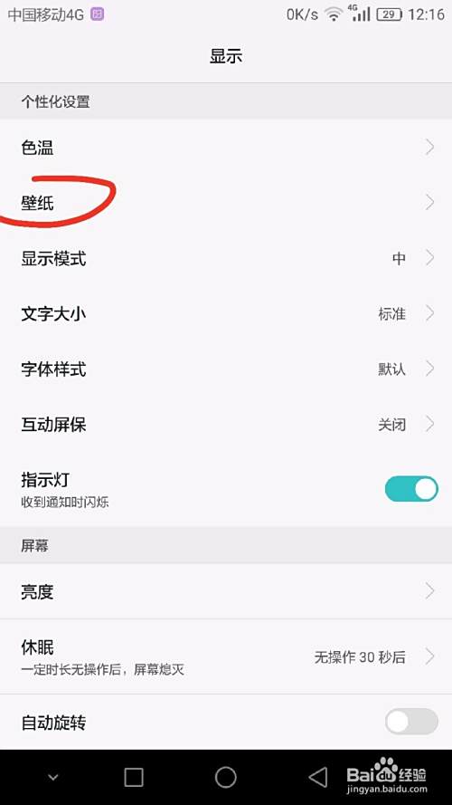 这里设置好了之后,就退出来,进到手机主菜单的“设置”里面,找到“显示”,再在显示的下一级里找到“壁纸”