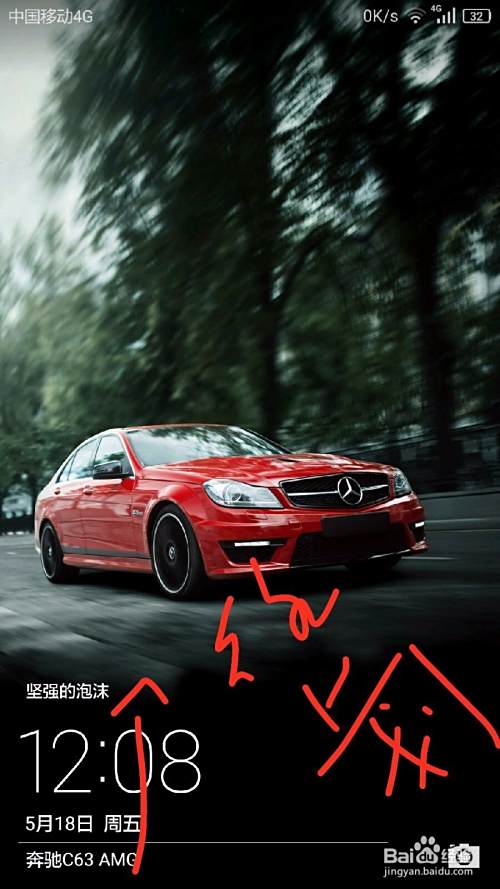 按一下手机开关键,点亮屏幕,手指从屏幕最下方往上划一下,进入一个界面
