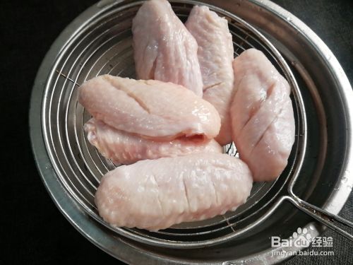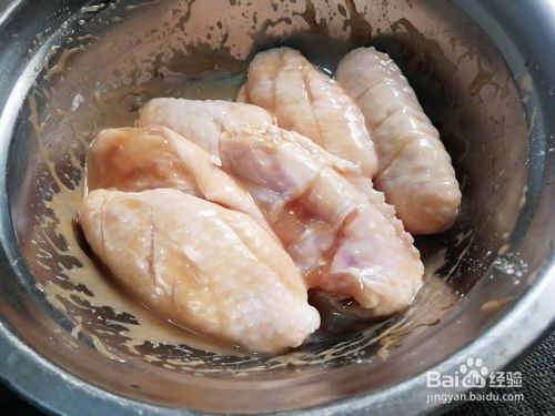 再把鸡中翅洗干净在两面划上二到三刀,再控干水份,放少量盐,少量料酒,一汤匙蚝油,少量鸡粉,搅拌均匀后腌制十分钟以上。