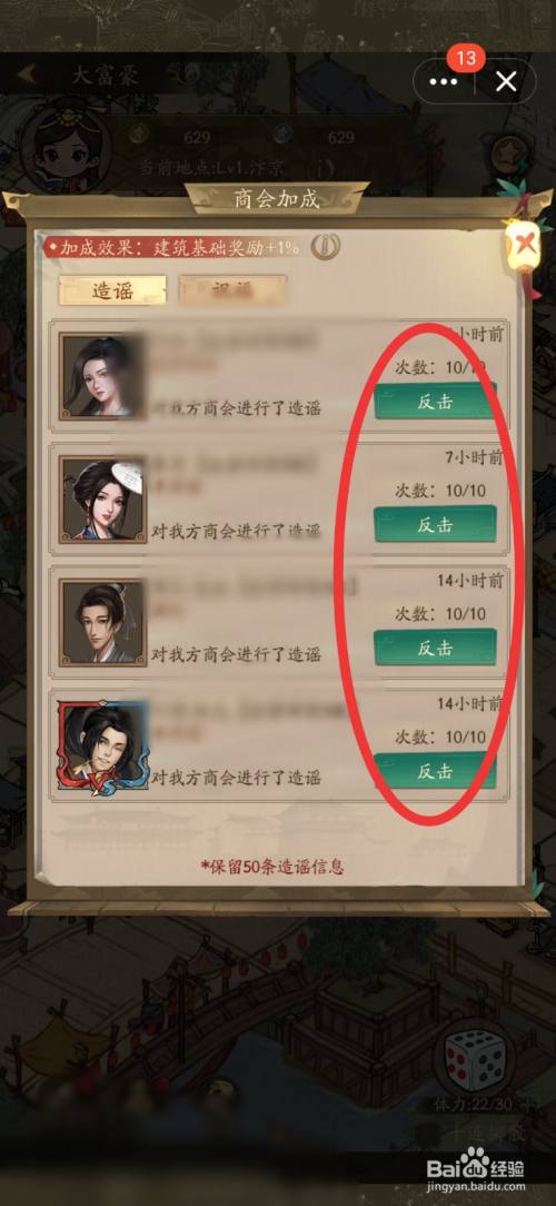 进入商会加成页面,选择一人点击【反击】。